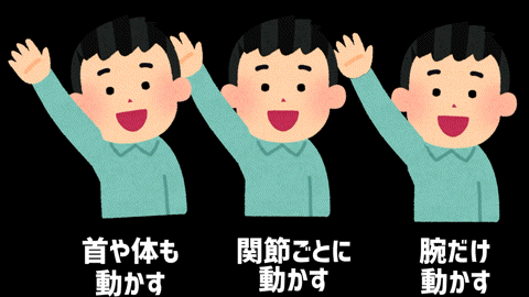 動かす部位を増やすほど「動いてる」印象が強くなります(当たり前)。