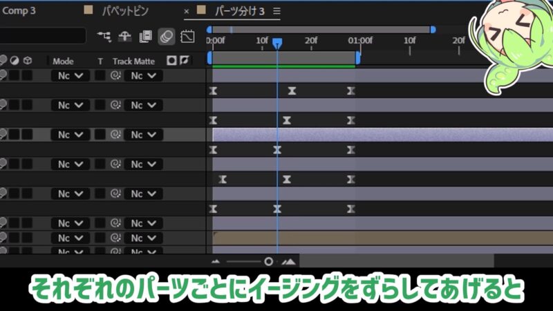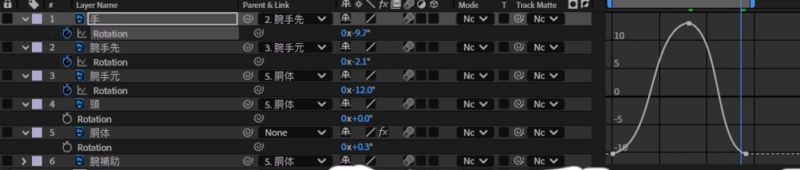 また、各パーツの動くタイミングやグラフの形状をずらすとリアルな動きになります!