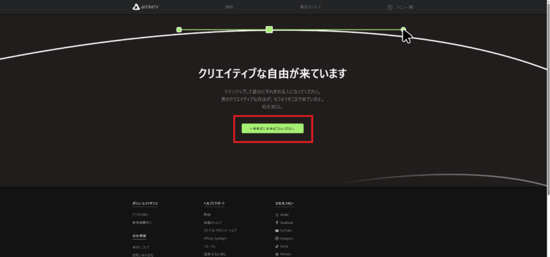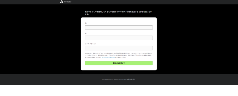Affinity公式ページにアクセスします(PCでもiPadでも大丈夫です)。