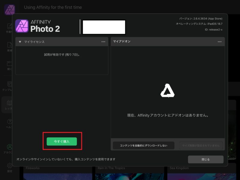 すると購入画面が出てくるので「今すぐ購入」をタップ。