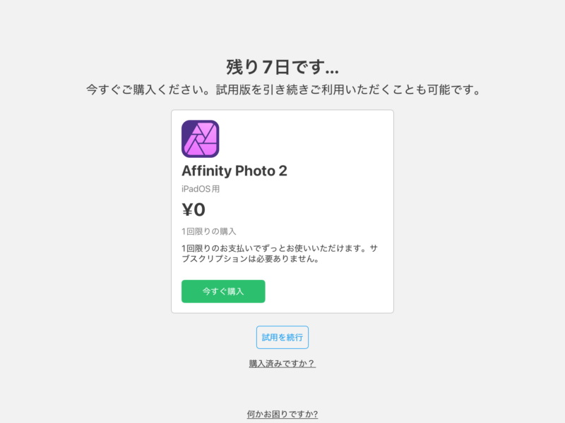 なんと今ならAffinity Photo2、Designer2、Publisher2の3つとも無料で買い切り可能なのでとりあえず購入しておくと役に立つかもしれません!(2025/10/11現在)