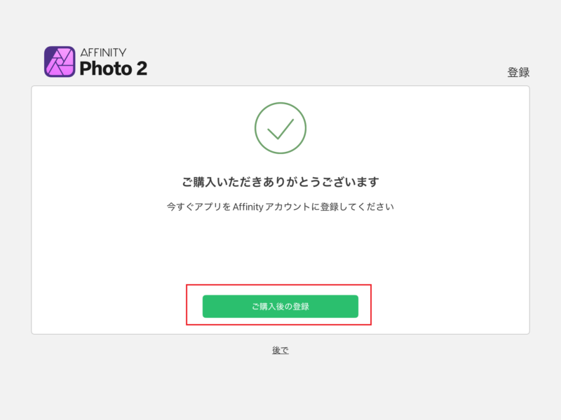 購入製品をアカウントと紐づける事を忘れずに!(この画面は自然と出てくると思います。