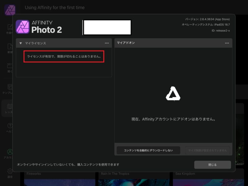 メイン画面からもう一度「アカウント」をタップすれば、ライセンスが登録されていることを確認できます。